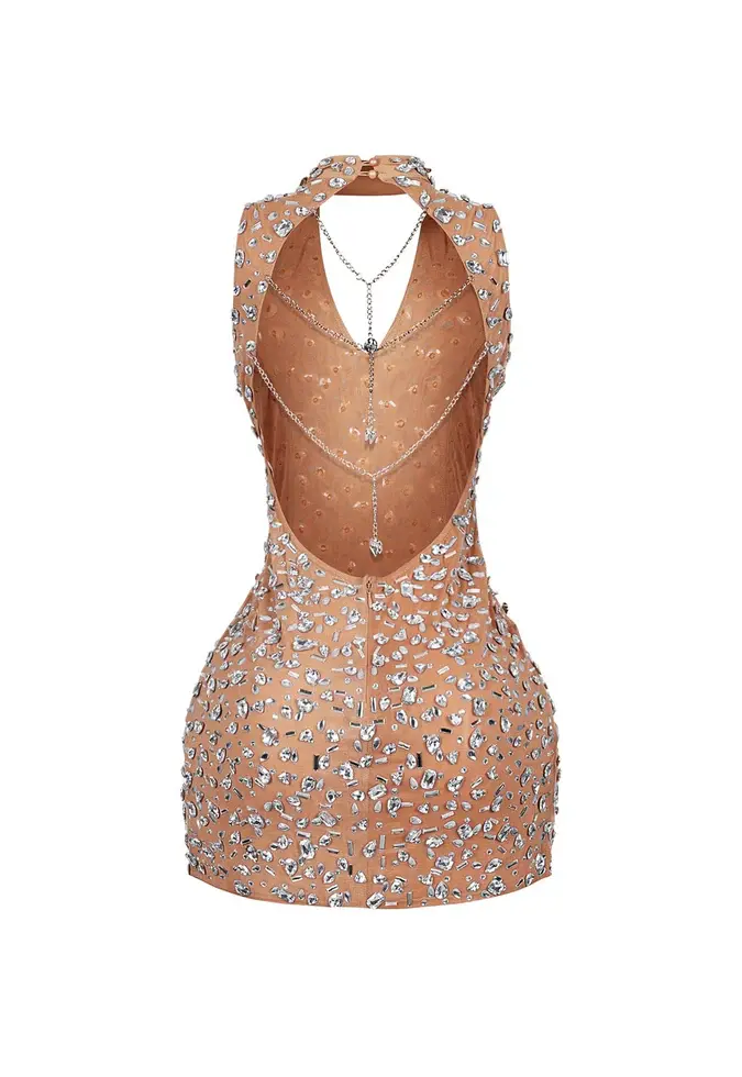 Stand out at any event with our Gina Rhinestone Mesh Halter Mini Dress. This stunning dress features a halter neckline adorned with dazzling rhinestones, creating a glamorous and chic look. The mesh fabric adds a touch of sexiness, while the mini length gives off a flirty and fashionable vibe. Perfect for a night out or special occasion, this dress is sure to turn heads and make you the center of attention. Available in multiple colors, this dress is a must-have for any fashion-forward wardrobe.